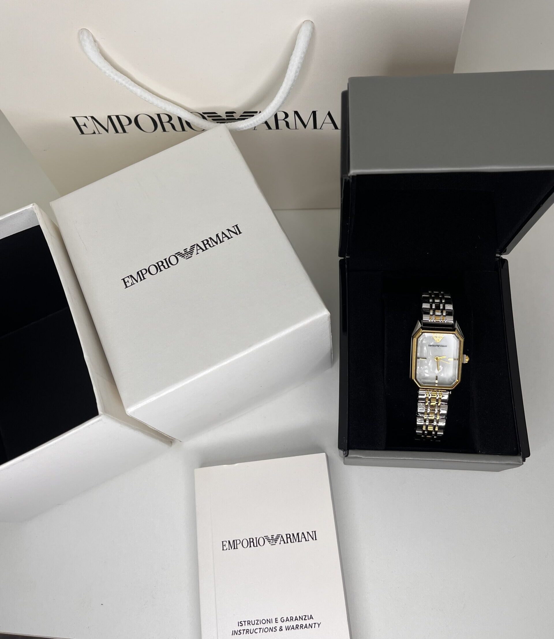Emporio Armani – Rectangulaire Bicolore Cadran Blanc nacré