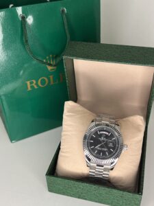 Be the first to review “Montre Rolex Day-Date – Cadran Noir Texturé , Jour + date avec loupe Cyclope”