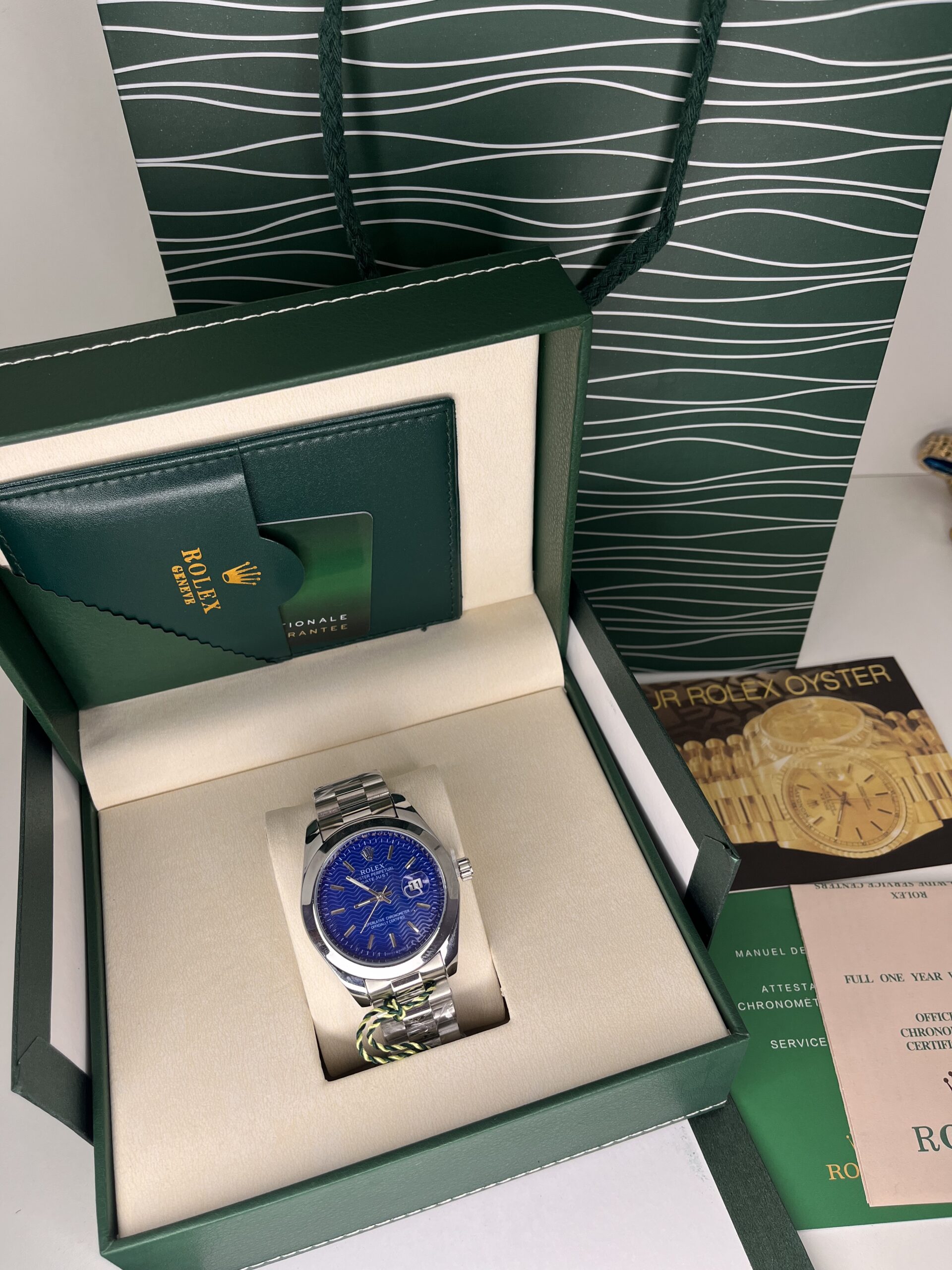 Be the first to review “Rolex Datejust – Cadran Bleu Motif Vague & Bracelet Oyster”